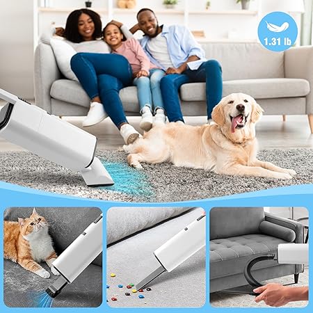 - Powerful 20,000 Pa Suction for Pet Hair: This handheld vacuum offers a strong suction power of 20,000 Pa, efficiently collecting 99% of pet hair into its vacuum container. Specially designed for pet-owning households, this portable vacuum cleaner excels at removing dust, crumbs, and pet hair from carpets, living rooms, kitchens, and offices. It is an excellent helper for refreshing your environment in seconds, allowing you to enjoy a more comfortable life.